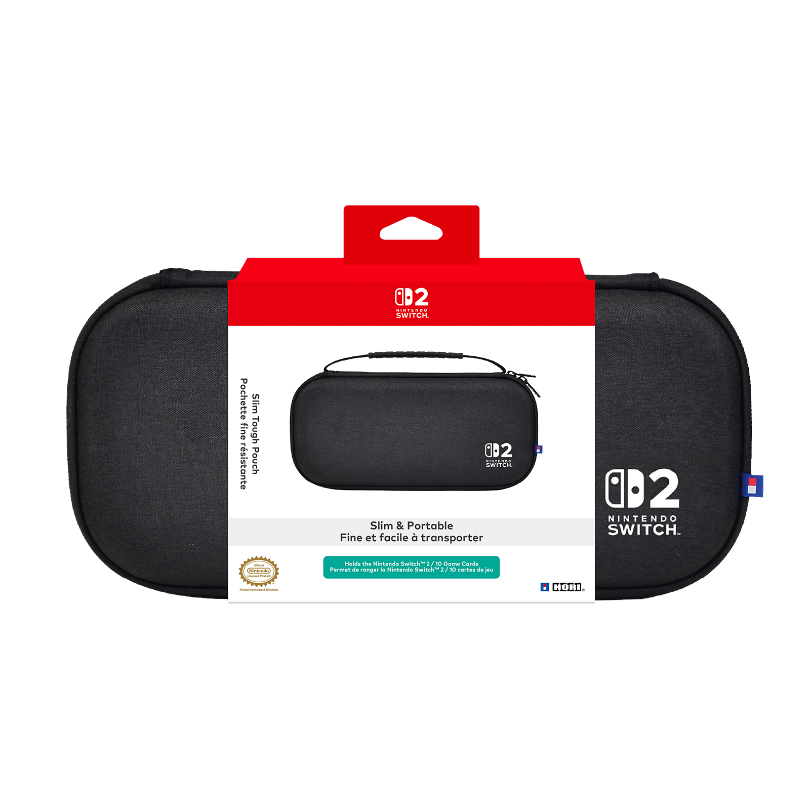 Game on the go and in style with the HORI Slim Tough Pouch (Black) for Nintendo Switch™ 2. This slim, lightweight pouch places a form-fit protection that is tough and durable. Holds up to 10 game cards and the plush interior keeps your system safe from scratches. Features a convenient carry handle for easy transport. Officially licensed by Nintendo®.