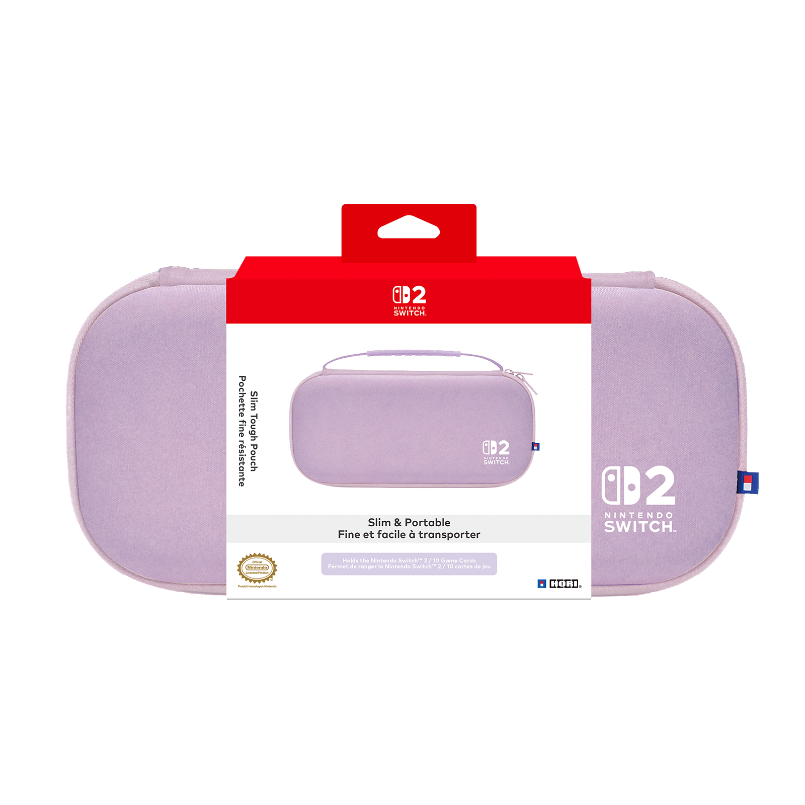 Take your system and accessories with you on your next game session with the HORI Slim Tough Pouch (Cozy Lavender) for Nintendo Switch™ 2. This slim, lightweight pouch places a form-fit protection that is tough and durable. Holds up to 10 game cards and the plush interior keeps your system safe from scratches. Features a convenient carry handle for easy transport. Officially Licensed by Nintendo®.