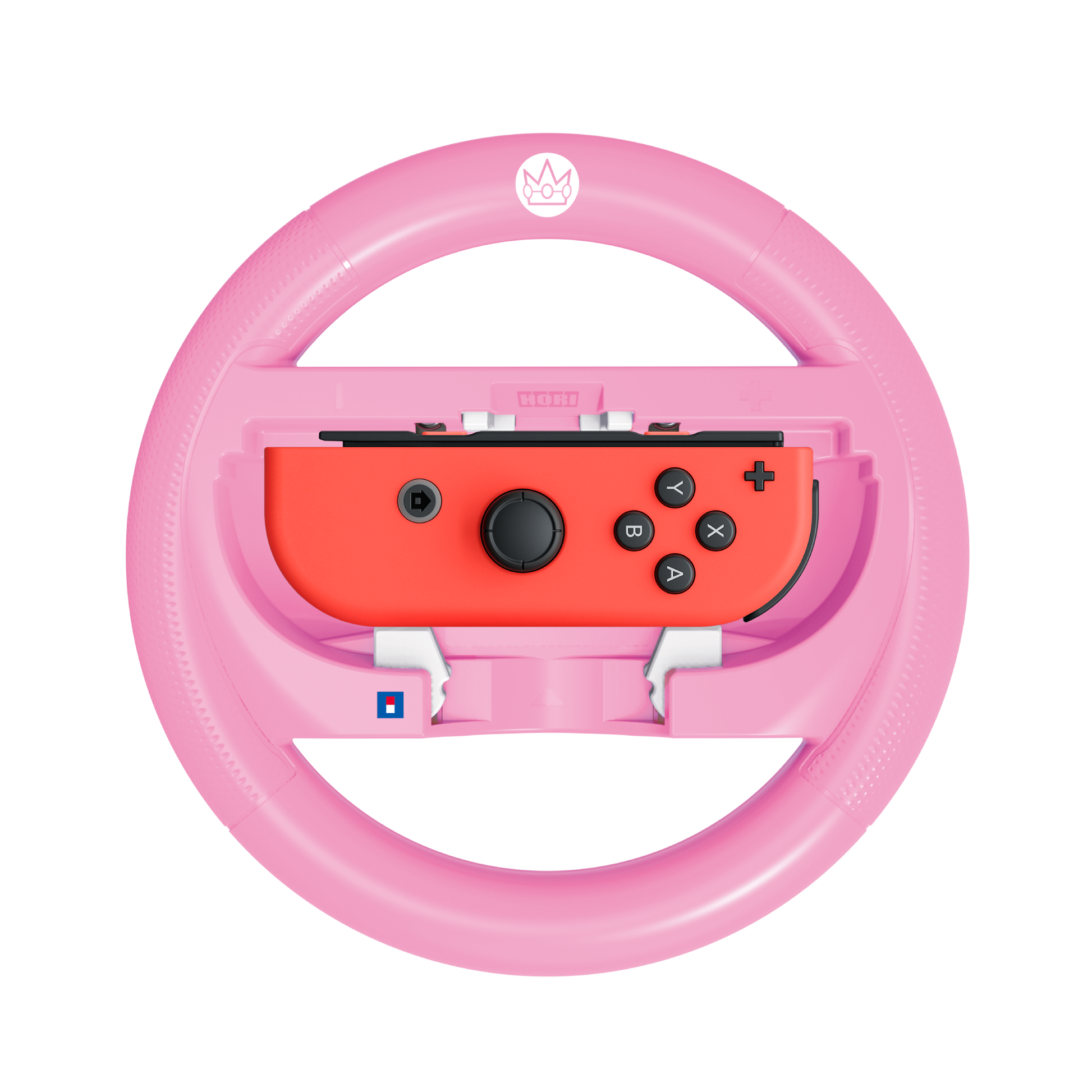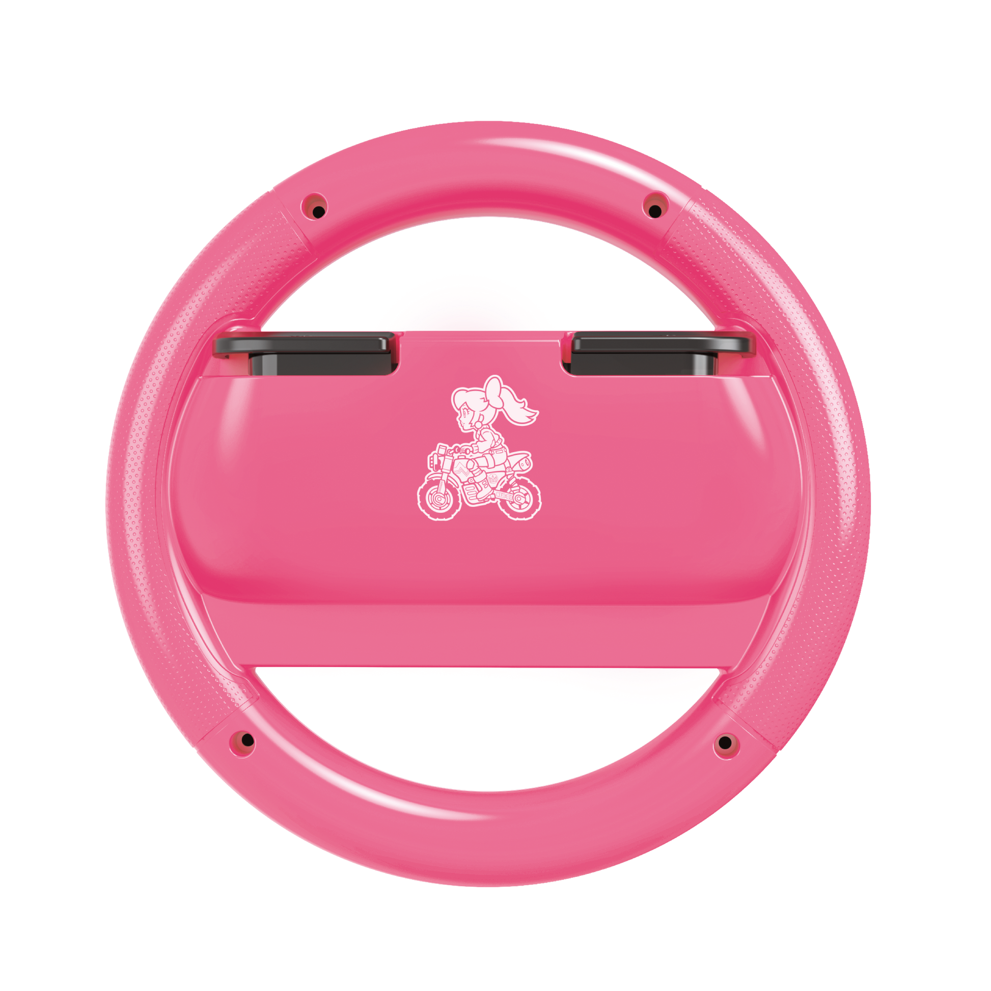 Race through Mario Kart World’s exciting courses with the HORI Mario Kart Racing Wheel Attachment (Peach). Simply pop your Nintendo Switch™ 2 Joy-Con™ 2 or Nintendo Switch™ Joy-Con™ controller (each sold separately) into the racing wheel attachment and enjoy the lightweight feel and textured grips. Featuring responsive shoulder buttons for easy controls and game immersion. Officially Licensed by Nintendo®.