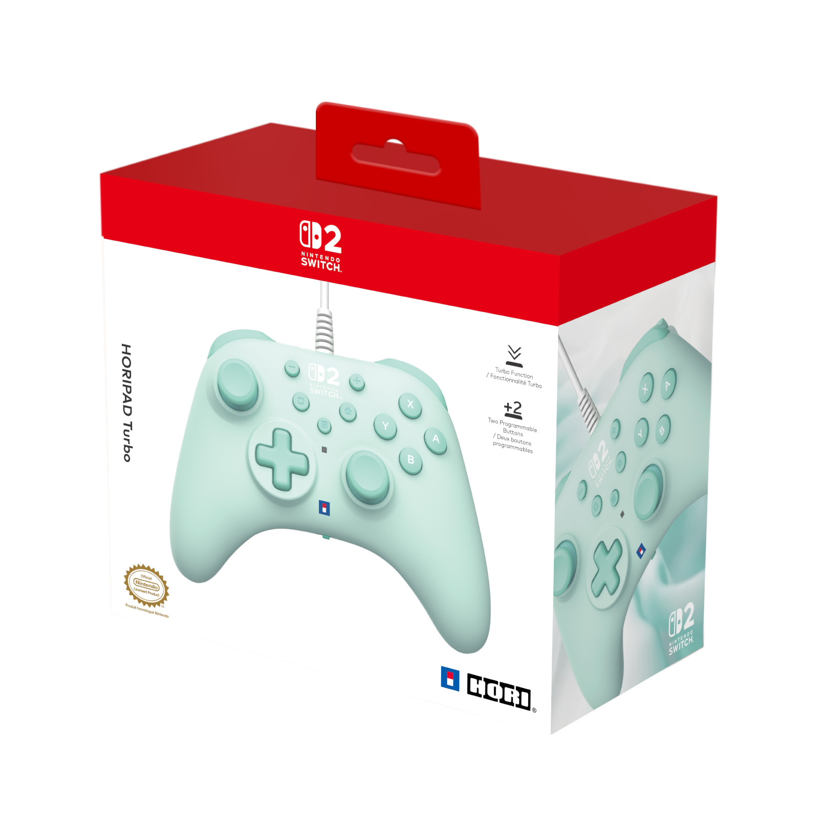 Enjoy plenty of Nintendo gaming sessions with the HORIPAD Turbo for Nintendo Switch™ 2 in Cozy Green. This sturdy, ergonomic controller boasts an array of features including programmable rear buttons, precision analog sticks, Turbo settings and more. Assign functional to change button functions freely to customize your play experience! Wired functionality provides lightning-fast responses and tournament-ready performance, while an ergonomic grip and a lightweight profile ensure continued comfort. Connect to your system through the USB-A 9.8 ft cable. Compatible with Nintendo Switch™ 2, Nintendo Switch™ and Nintendo Switch™ – OLED Model. Officially licensed by Nintendo®.
